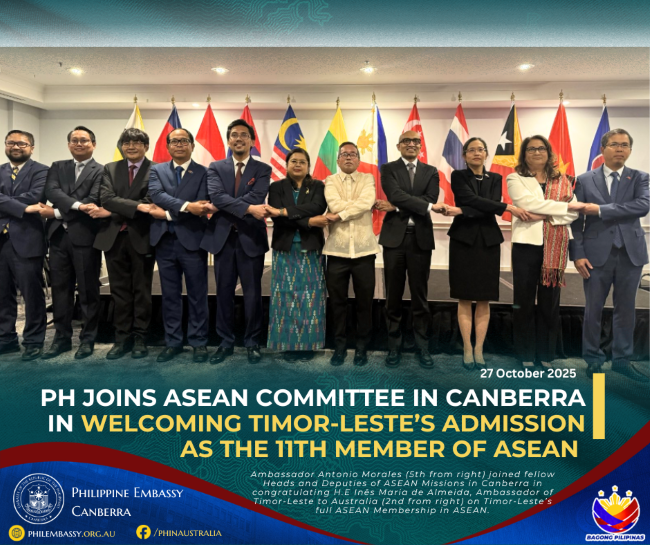 27 October 2025, CANBERRA – Ambassador Antonio Morales represented the Philippines at the reception hosted by H.E. Inês Almeida and the Embassy of Timor-Leste to celebrate Timor-Leste’s admission as the 11th member of the Association of Southeast Asian Nations (ASEAN) on 27 October 2025.
