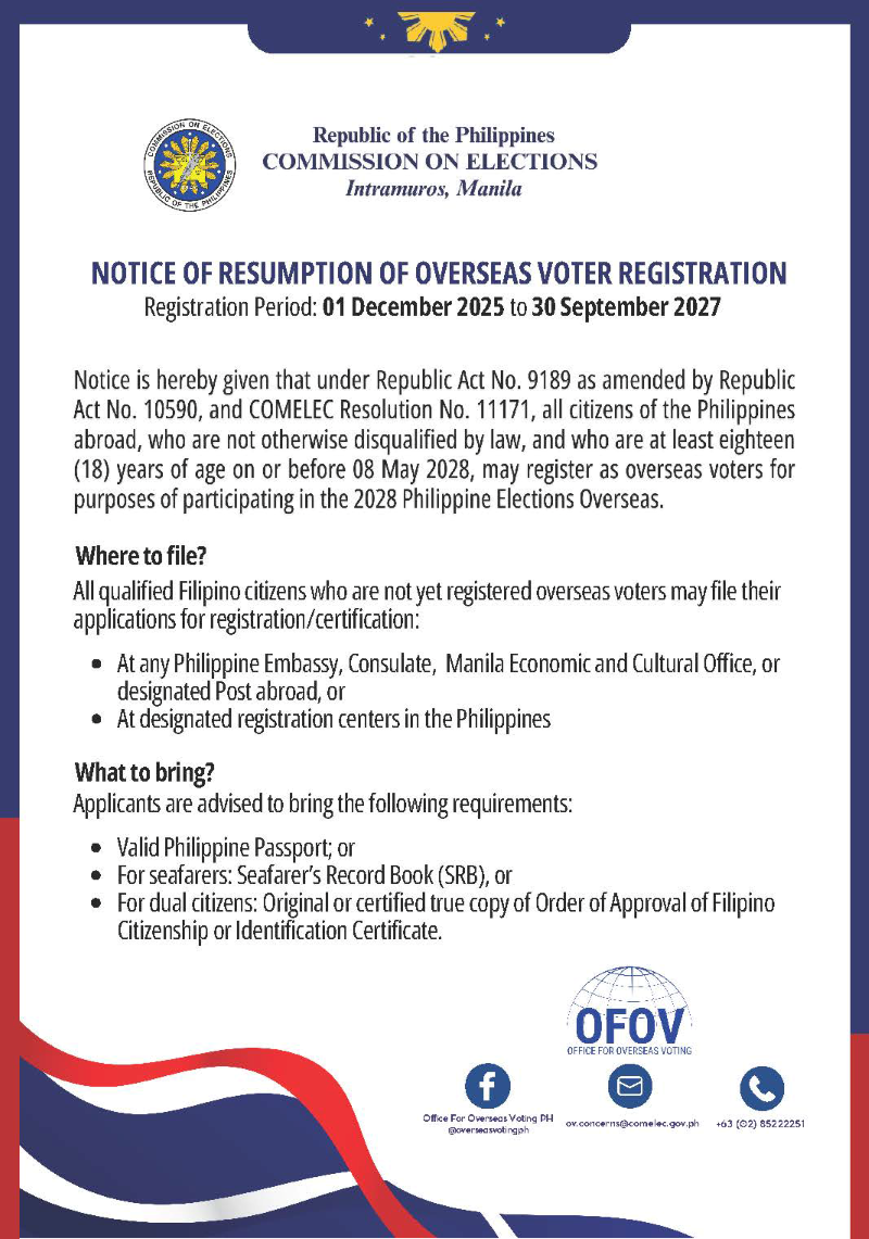 04 August 2025 - The Philippine Embassy in Canberra will conduct a Mobile Consular Mission to Darwin, Northern Territory on 16-17 September 2025 at Novotel Darwin Airport located at 2 Sir Norman Brearley Drive, Darwin, NT.