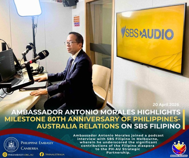 20 April 2026, MELBOURNE - Philippine Ambassador to Australia, H.E. Antonio Morales, joined a podcast interview with Maridel Martinez-Andanar, Senior Producer of the Filipino Language Program at SBS Filipino, where he discussed the evolving Philippines-Australia partnership and the vital role of the Filipino community.