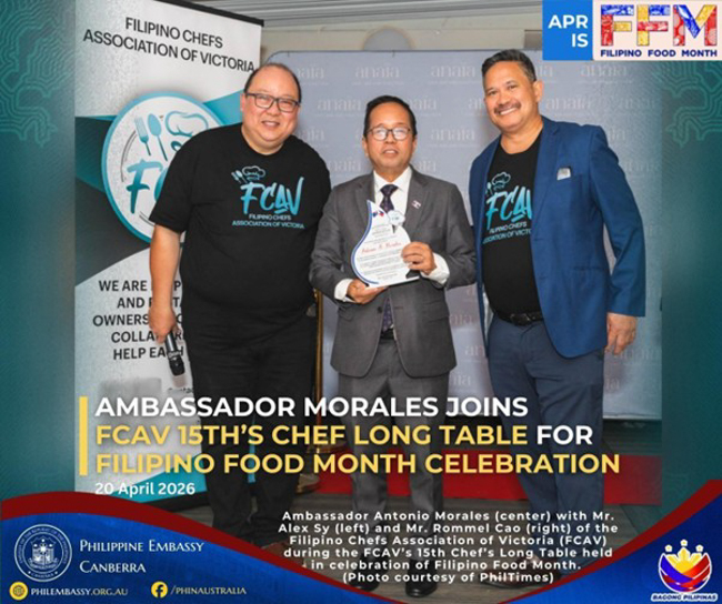 21 MARCH 2026, SYDNEY – Philippine Ambassador to Australia H.E. Antonio A. Morales joined the Bicol Communities League Inc. in celebrating its 20th Anniversary Ball at Wentys Leagues Club in Wentworthville, New South Wales. Led by its Chairperson, Ms. Fe Biso Moran, the event paid tribute to National Artist Nora Aunor, one of Bicol’s most cherished daughters and a lasting icon of Philippine cinema and music.