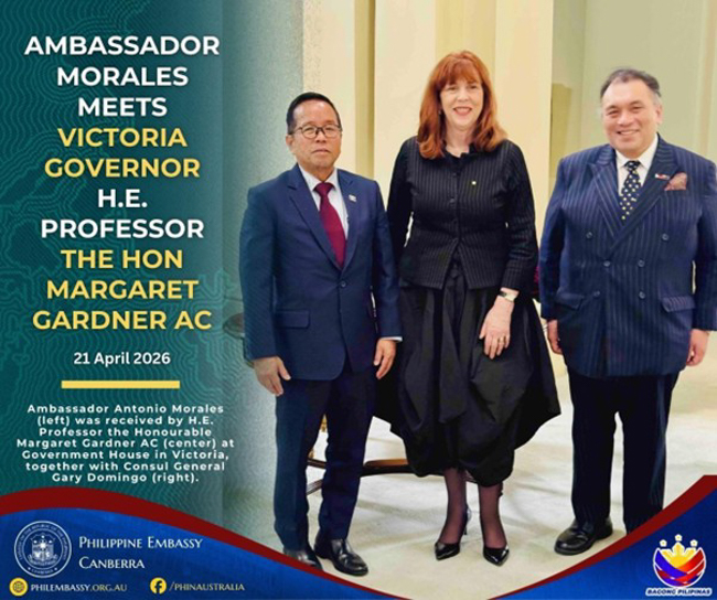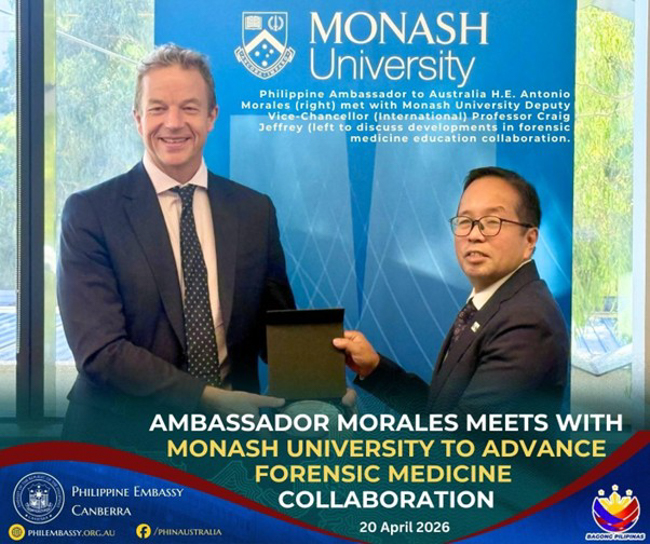 20 April 2026, MELBOURNE - Philippine Ambassador to Australia, H.E. Antonio Morales, commenced his official visit to Victoria with a meeting with Monash University to reinforce ongoing cooperation in forensic medicine education and institutional development.